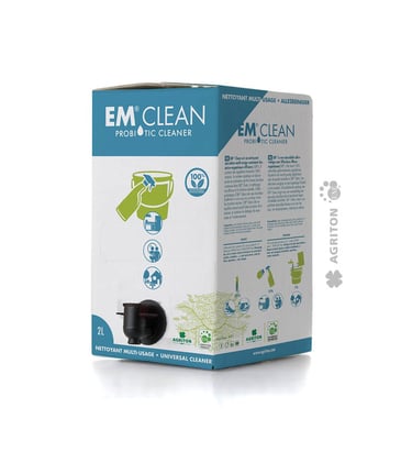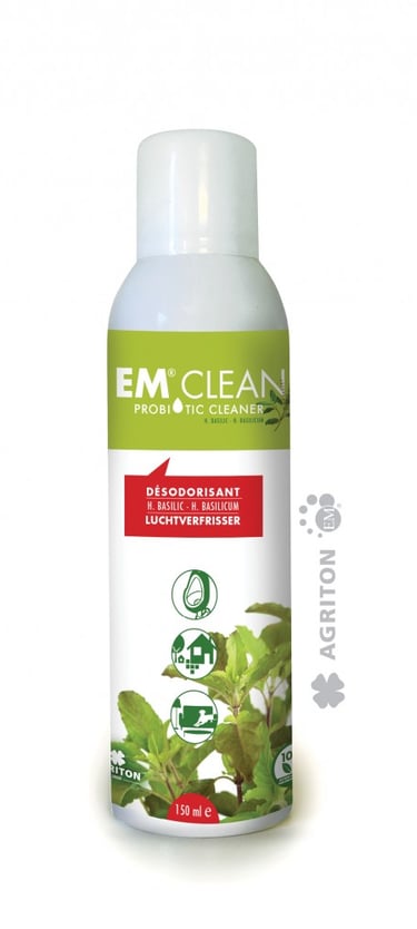 Vous pouvez, en complément, utiliser le désodorisant EM Clean en pulvérisations régulières sur la litière, qui permet de réduire encore les odeurs, voire de les supprimer complètement.
